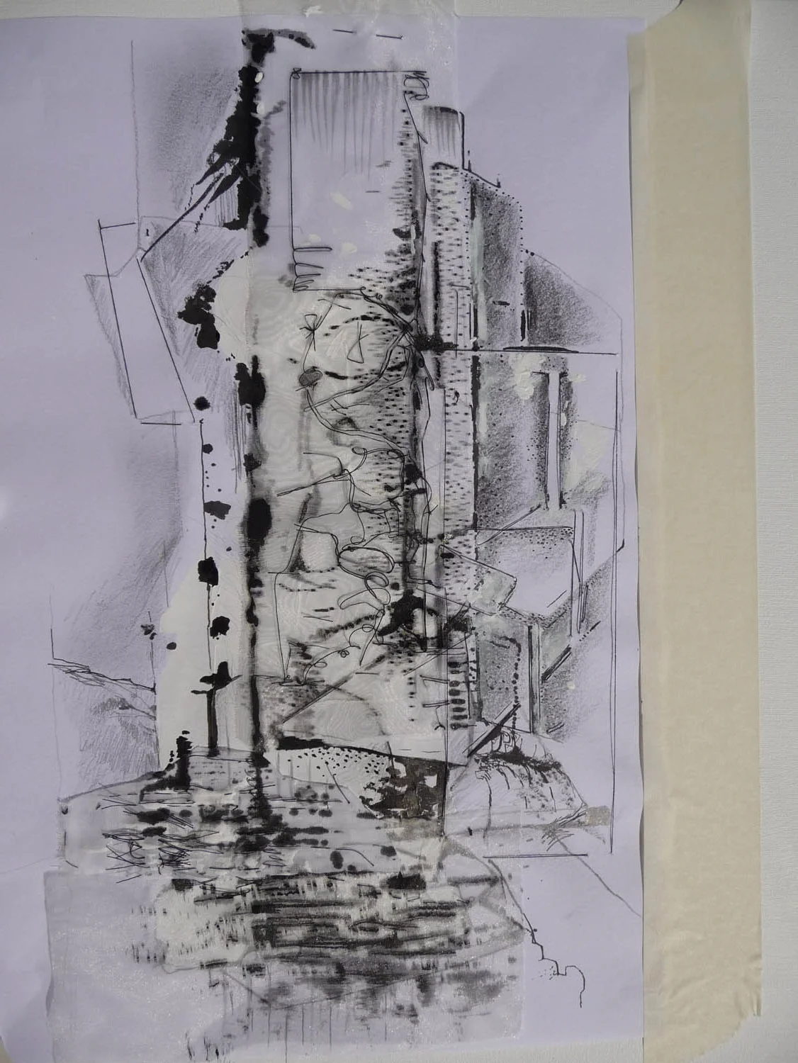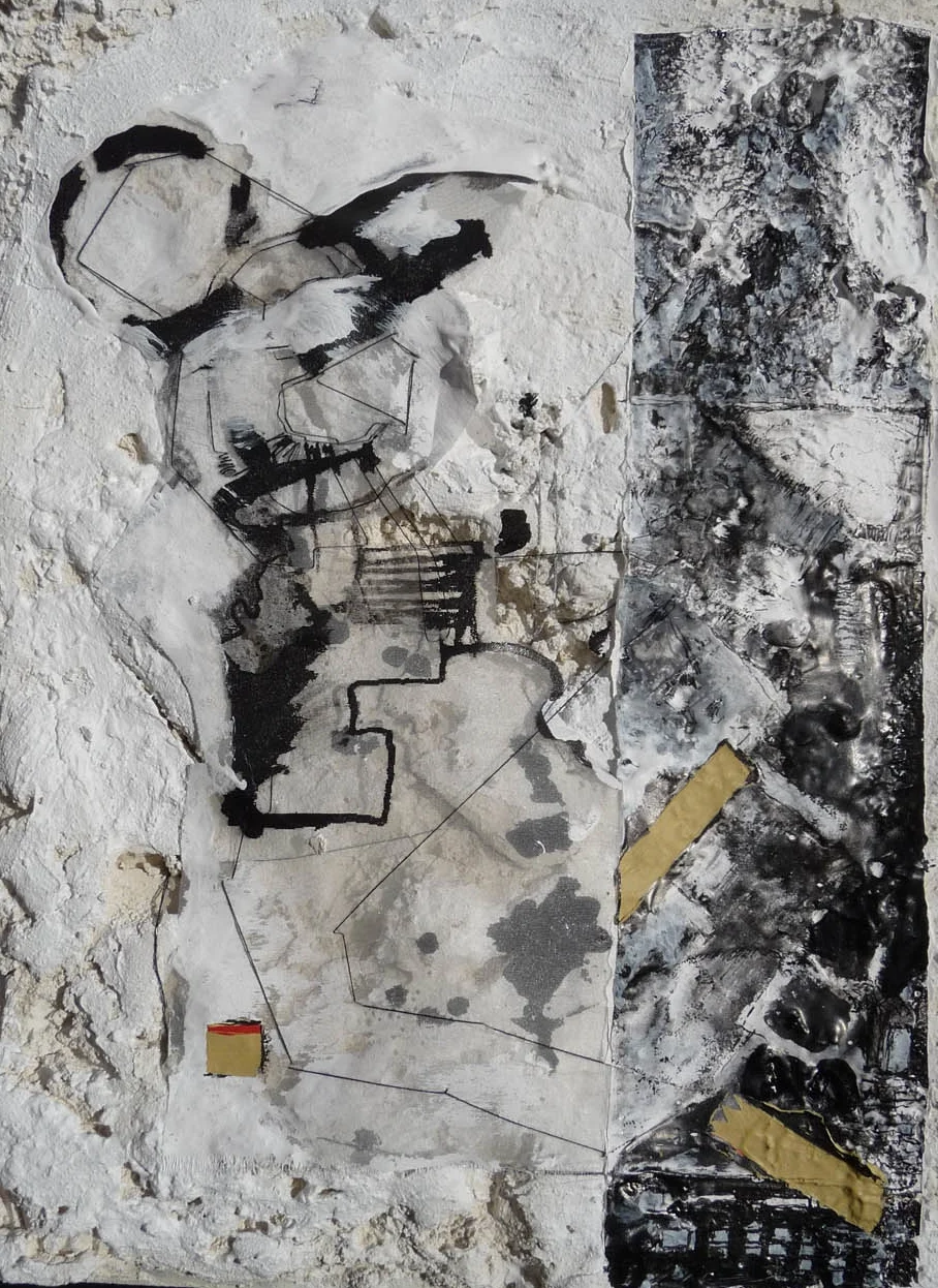 130 cm x 60 cm, acrylic paint, thread, transparent fabric, on canvas